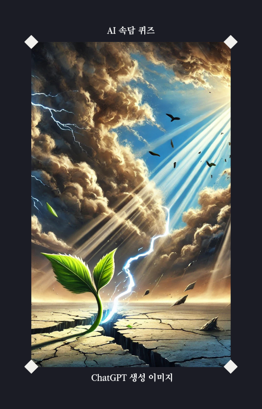 잠시 생각해 보세요. 이 그림이 어떤 의미를 담고 있을까요? 힌트를 드리자면, 이 속담은 희망과 극복에 대한 이야기입니다.