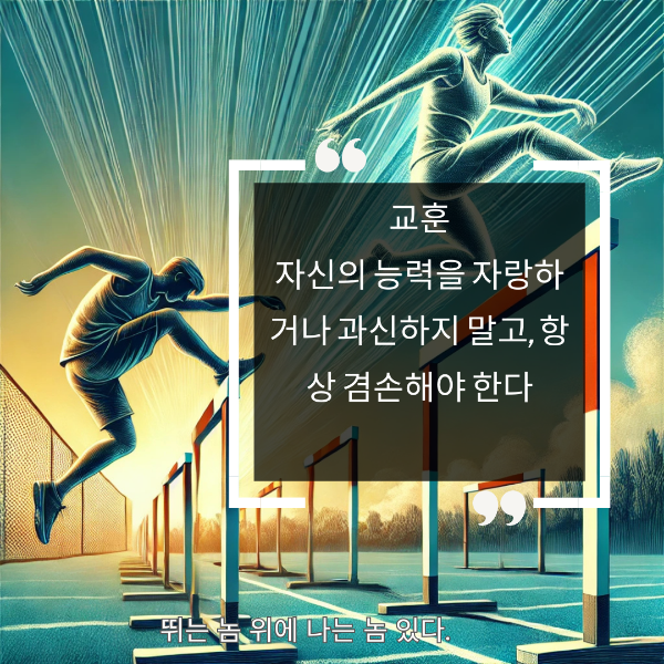 예를 들어, 달리기를 잘하는 사람이 자신만만하게 자랑하고 있을 때, 그보다 더 빠른 선수가 나타난다면 어떨까요? 그래서 우리는 언제나 겸손한 태도로 배우고 노력해야 해요.
